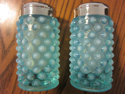 Title (ebay affiliate link): Vintage Blue Milk Glass Hobnail Salt & Pepper Shaker Set Aqua Turquoise