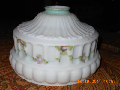 Antique vintage white milk glass looking lampshade handpainted floral design