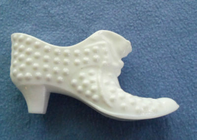 Title (ebay affiliate link): VINTAGE FENTON HOBNAIL MILK GASS WHITE CAT SHOE GLASS SLIPPER
