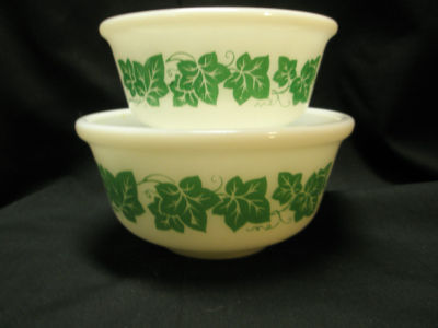 Vtg Milk Glass Ivy Pattern Nesting Bowls Hazel Atlas ?