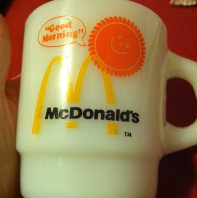 Title (ebay affiliate link): Vintage Fireking Milk Glass Mcdonalds Good Morning Mug Anchor Hocking Fire King