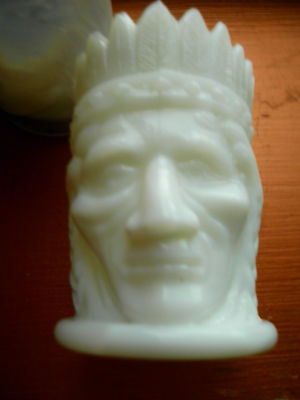 Signed Joe St. Clair White Milk Glass Indian Head Toothpick Holder