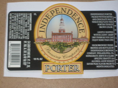 Title (ebay affiliate link): US.w.oct.II.U.S.A INDEPENDENCE BREWERY-PHILADELPHIA.nr.42.beer label