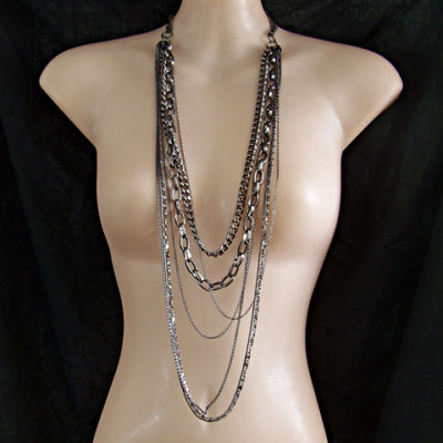 Title (ebay affiliate link): vintage antique style jewellery jet black multi chain strand long necklace LN4