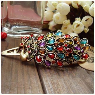 New Colorful Vintage Retro Antique Crystal Peacock Hairpin