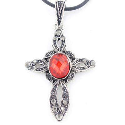 Vintage Antique SILVER-tone Crystal Cross NECKLACE