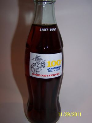 MARINE CORPS EXCHANGE 100TH ANNIVERSARY COCA COLA BOTTLE