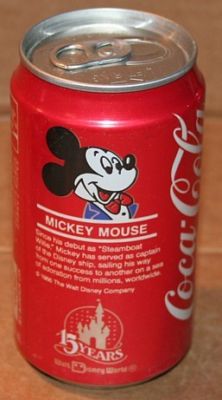 Title (ebay affiliate link): Pair of Coke Disney Cans, Minnie Mouse & Mickey Mouse, 1986, Bottom Opened
