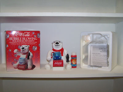 Title (ebay affiliate link): 1996 Coca-Cola Bubble Blowing Polar Bear Christmas Ornament Collectible NIB