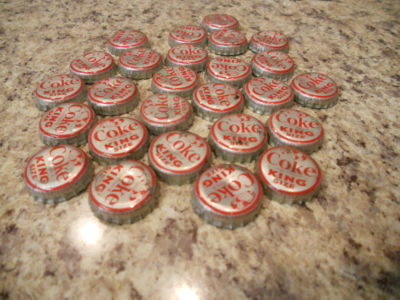Title (ebay affiliate link): 25 PLASTIC LINED USED COKE KING SODA BOTTLE CAPS ROANOKE VIRGINIA GLOBE PICTURED