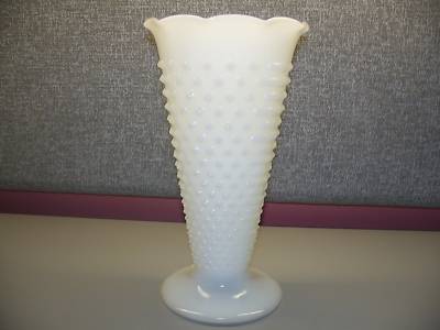 VINTAGE MILK GLASS HOBNAIL VASE 9" TALL ANCHOR HOCKING