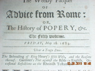 Title (ebay affiliate link): THE WEEKLY PACQUET OF ADVICE FROM ROME 1683 ORIGINAL ISSUE SCARCE