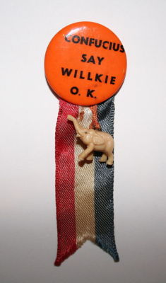 Title (ebay affiliate link): 1940 Wendall Willkie vs. Roosevelt Slogan Ribbon Campaign Button Political Pin