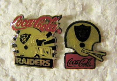 LOT OF 2 OAKLAND RAIDERS 1980'S COCA COLA NFL FOOTBALL LAPEL HAT PINS PINBACK