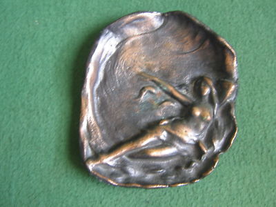 Antique Cast Iron Art Nouveau Copper Clad Vanity Dresser Pin Dish Reclining Nude