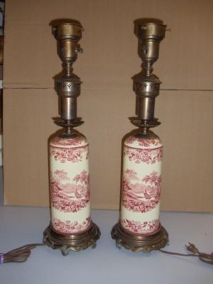 2 Antique 1890's Transferware Table Lamps WOW Awesome Lamps