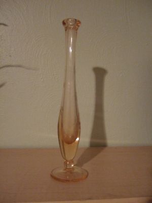 Antique Peach Glass Bud Vase w/ cut glass etching