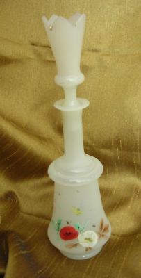 Title (ebay affiliate link): OLD WHITE OPALINE COLOGNE OR PERFUME - (BRISTOL?) GLASS & ENAMEL FLORAL DESIGN