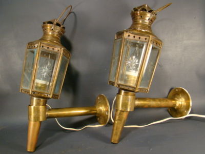 (2) Vintage BRASS Carriage BUGGY Old WALL SCONCE LIGHTS