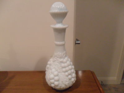 Title (ebay affiliate link): Imperial White Milk Glass Wine Decanter with Grape Pattern