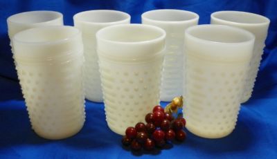 Vintage Milk Glass Hobnail & Bars Tumblers 7 each