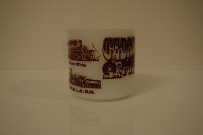 Vintage FEDERAL Milk Glass Souvenir Mug - CEDAR POINT - Sandusky - OHIO