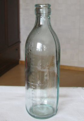USSR Russian Soviet glass scaled baby milk bottle 1950's