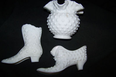Title (ebay affiliate link): FENTON HOBNAIL MILK WHITE GLASS LOT 3 PIECES BOOT SHOE VASE