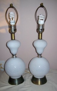 VTG Hobnail White Milk Glass Globe Lamps (pair) 26"tall