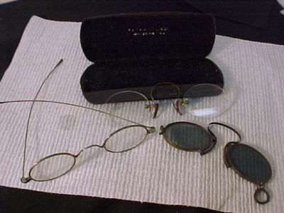 lot of 3 PR Vintage PINCE NEZ Eyeglasses BLUE GRAY LENSE nose clip on EARLY