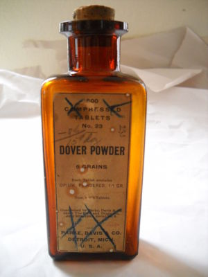 Title (ebay affiliate link): Old Dover Powder Pill Bottle 500 Tablet size. Ipecacuanha and Opium