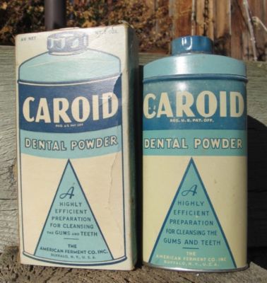 Caroid Dental Powder Tin, Box, Flyers, c. 1939