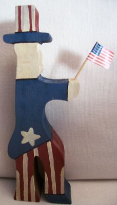 Title (ebay affiliate link): Primitive Americana Patriotic Folk Art Wood Carved Uncle Sam Figurine With Flag