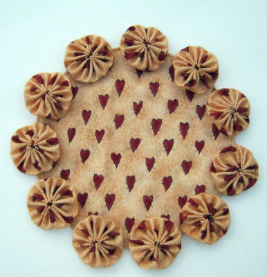 Primitive Valentine Stitched Hearts YoYo Candle Mat Doily Centerpiece