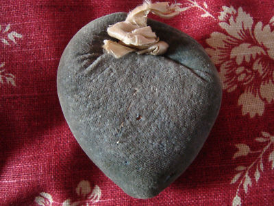 Title (ebay affiliate link): EARLY BLUE VELVET PIN CUSHION-HEART-SHAPED-WONDERFUL LOOK-NOT A REPRO