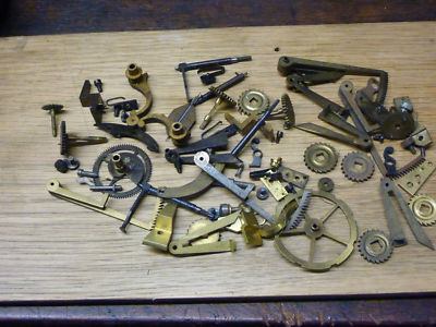 GOOD LOT ANTIQUE FRENCH CLOCK PARTS-SCREWS ETC,,,