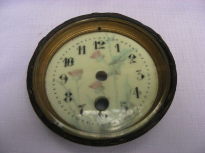 Title (ebay affiliate link): Antique Enameled 4.25 inch Clock Face Mantel / Shelf Clock Part