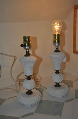 White Hobnail Milk Glass Pair of Table Lamps