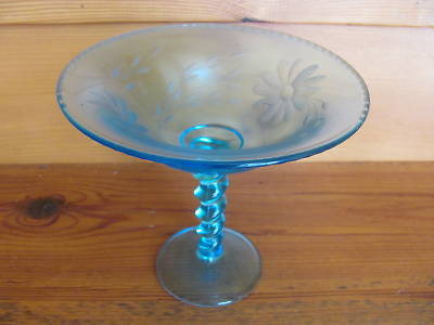 Antique Blue Glass Depression Glass Candy Dish w/Stem
