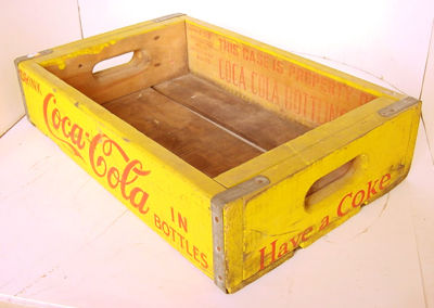 Title (ebay affiliate link): 1966 COCA-COLA YELLOW PAINTED WOOD BOTTLE CASE WOODSTOCK MFG. CHARLESTON, SC