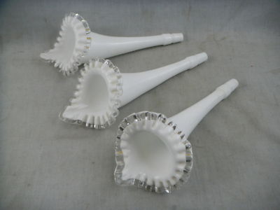 3 Vintage Fenton Milk Glass / Silver Crest Epergne 10 1/2" Trumpets