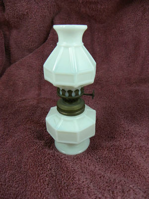 Miniature Milk Glass Octogon Oil Lamp with Matching Shade