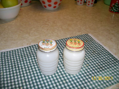 Vintage ANCHOR HOCKING FIRE KING Tulip Lid MILK GLASS Range Salt & Pepper Shaker