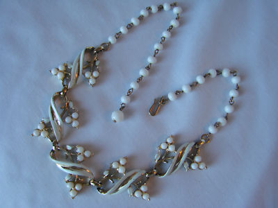 Title (ebay affiliate link): LOVELY WHITE MILK GLASS BEADS ENAMEL UNSIGNED 50'S ERA NECKLACE LISNER QUALITY