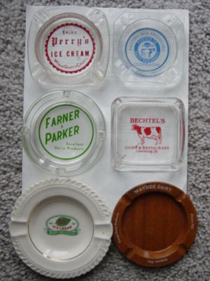Title (ebay affiliate link): 6) 1950-60s NY PA. WI. Glass ASHTRAY dairy milk bottle smoking cigar advertising