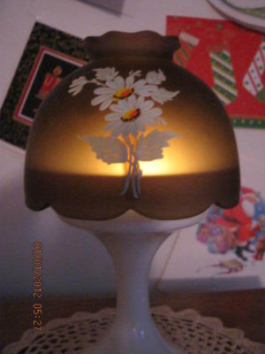 Title (ebay affiliate link): Westmoreland Brown Shade/Milkglass base Tealight lamp-Painted Daisys-EUC