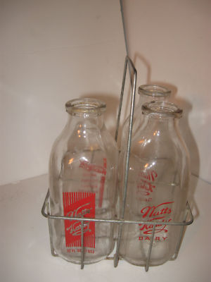 Title (ebay affiliate link): Vintage Metal Milk Carrier W/Four 1/2 Gallon Glass Milk Jugs-Natts Hardy Dairy