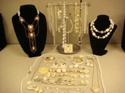 Title (ebay affiliate link): Huge Lot Vintage White CostumeJewelry Milk Glass Some Signed Wearable