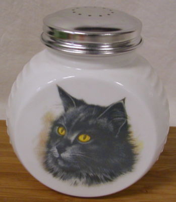 Milk Glass Round Flour Shaker w/ Cat