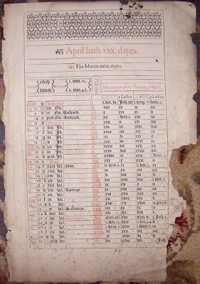 C1570 FOLIO BIBLE BLACK LETTER KALENDAR LEAF-APRIL-MAY/RARE!